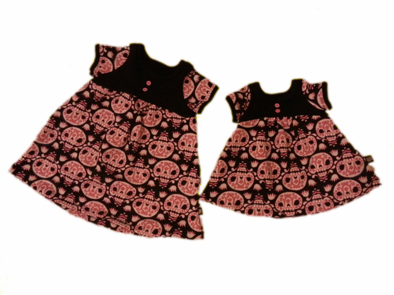 Matchande syskonklänningar i storlek 56 och 92.